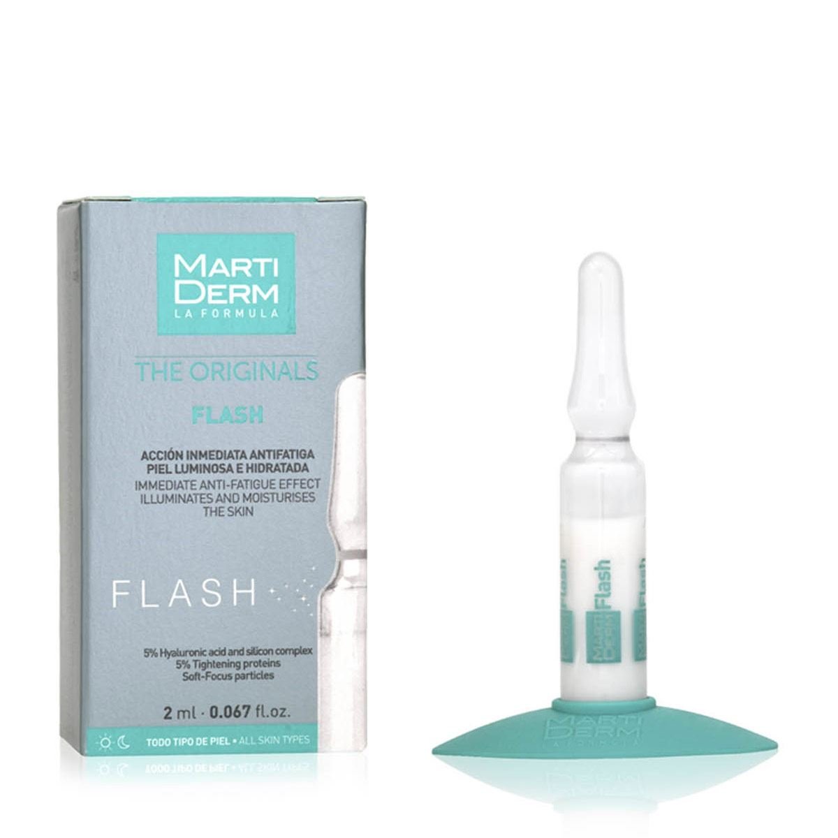 Po čemu je ona posebna? Flash ampule imaju trenutni efekat, brišući znakove stresa i umora, hidrirajući i učvršćujući sve tipove kože hijaluronskom kiselinom i silicijumom.